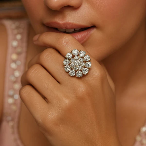 "Adorn yourself with the striking elegance of the Pave Heart & Ring Motif Jewelry Set. This three-piece collection features a romantic and intricate design, utilizing brilliant micro-pave simulated diamonds set against a warm, highly-polished rose gold-tone finish. The design integrates a stylized heart outline and a delicate ring shape, offering a modern, symbolic look.